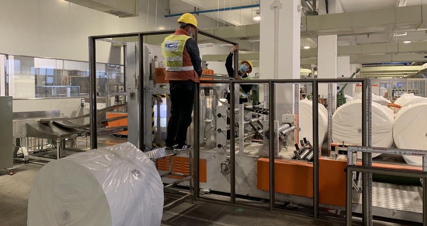 大型造紙廠餐巾紙機降噪工程,未治理前機器1米處噪聲為100 分貝,經(jīng)我司設計、施工治理后機器1米位置測得噪聲≤85分貝,達到客戶要求,通過國家環(huán)保檢測驗